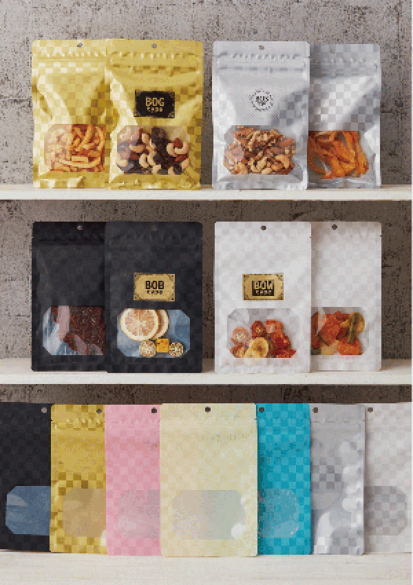 特徴:バリア性があり透明性・防湿性にも優れ、四角窓で中身が一目瞭然、薄ベージュ色・桜色・グレー色タイプのバリア性・チャック付印刷スタンド袋です。酸素バリア性に優れ、脱酸素剤を併用することで、カビの発生、酸化による品質の劣化を抑制し、食品の保存性がさらに向上します。また、防湿性にも優れています。